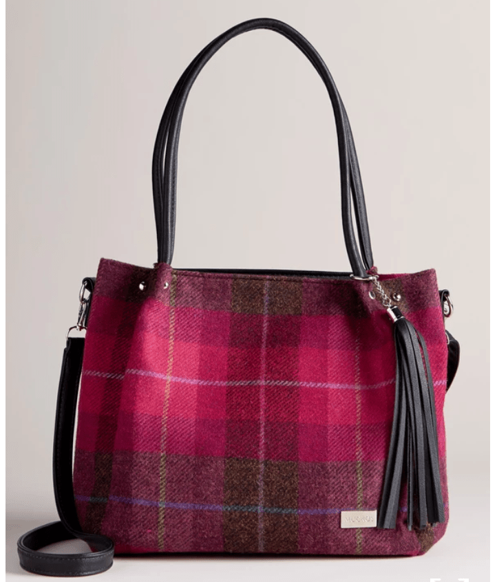 My preference would be a tweed bag without an obvious label–if you want a designer option then a Chanel reissue in tweed fits the bill. Otherwise, cast your eye about. Tweed does inescapably [usually] convey a sense of age, restraint and pragmatic nature. [The Dubliner Tweed purse has a great modern look to it, actually.]